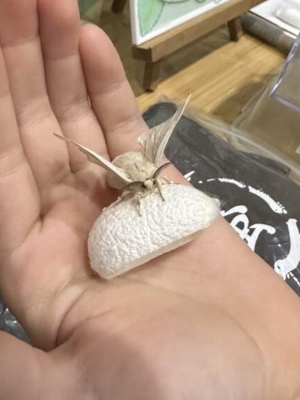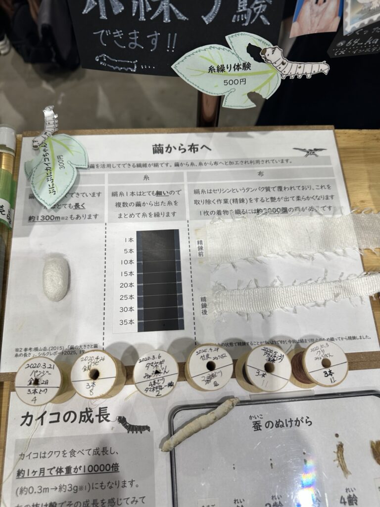 かいこちゃんもお触り出来ましたが、かわいいいー!もふもふー!しかし、カイコちゃん、お口なくて食べれないってのがなんとも不憫…。糸紬ぎ体験は間に合わなかったんですが、次回は体験したいです。