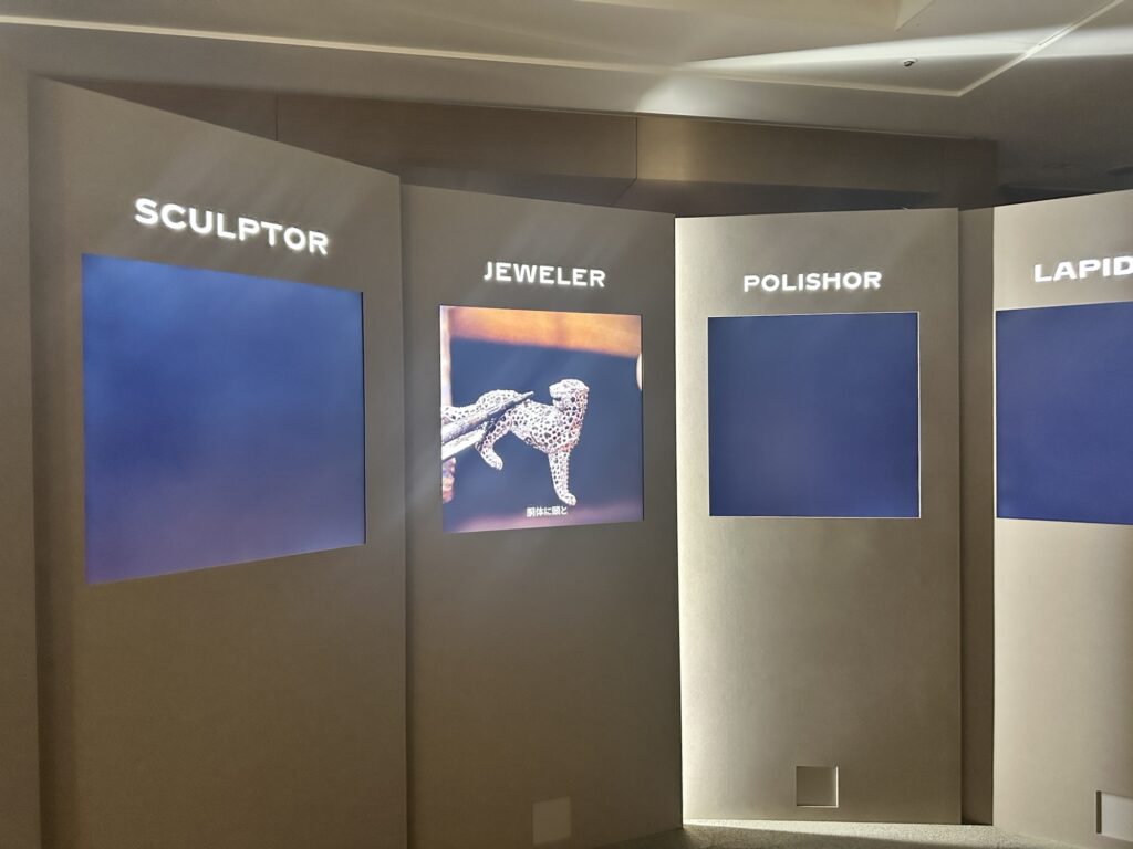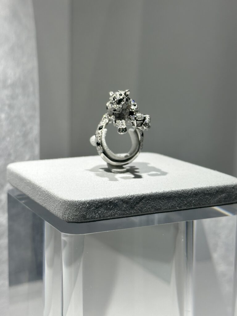 入場してすぐに、パンテールがーパンテールがー(そんなしつこくない)と案内され、パンテールとはなんぞやと思い聞いてしまいましたが、フランスではヒョウ、カルティエの象徴的なコレクション名だそうです、この場所で言ったらあいうえおのあを知らないようなもの…何も調べずすみません。頭の中をスノーレパードが走り抜けてゆくマックユーザー。