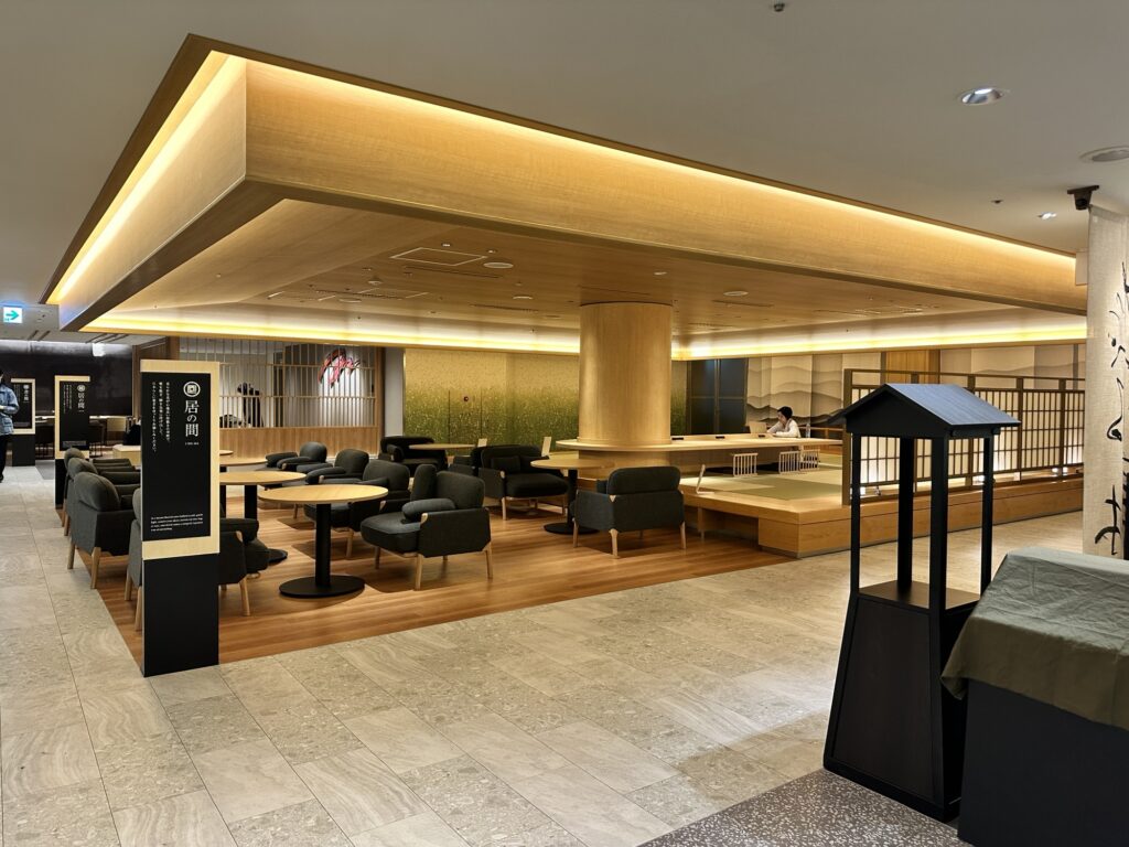 和風の休憩所?何ブロックかに分かれてる…畳のある場所、椅子のある場所、リクライニングチェアーのある場所…いずれも高級感あり、雰囲気が有料w