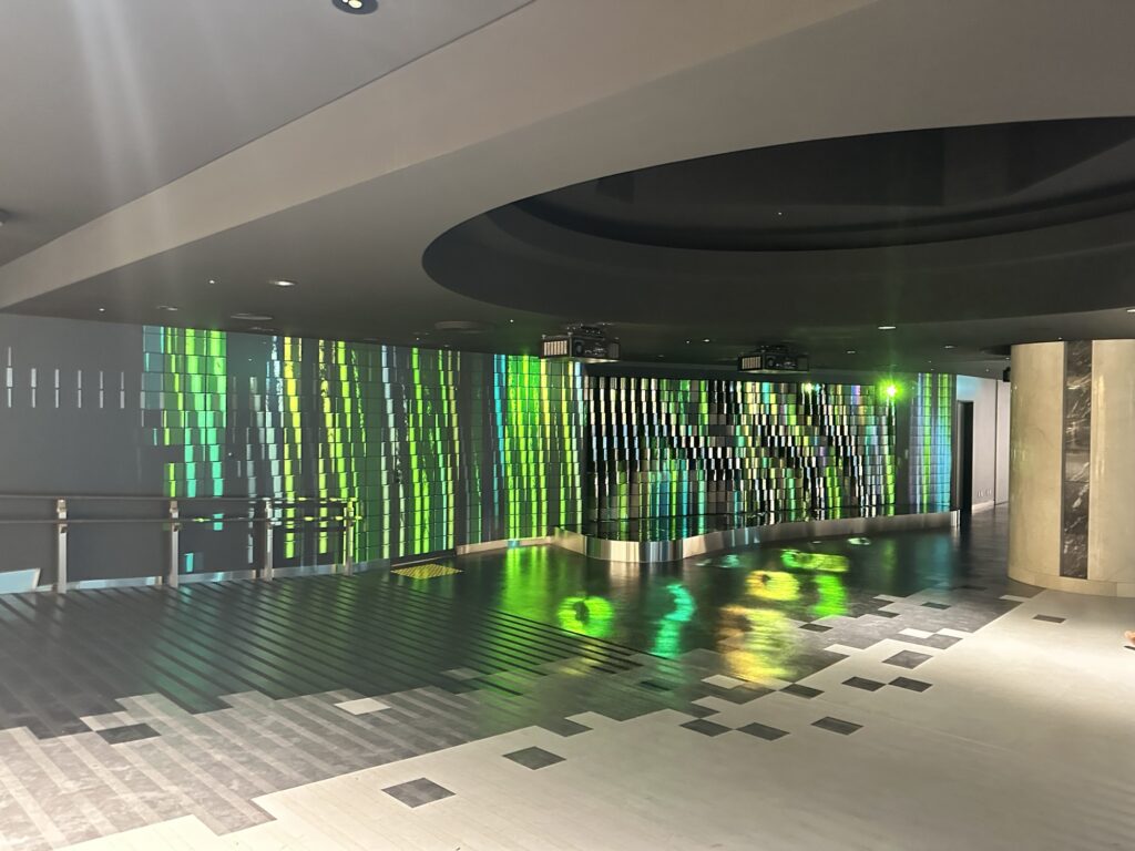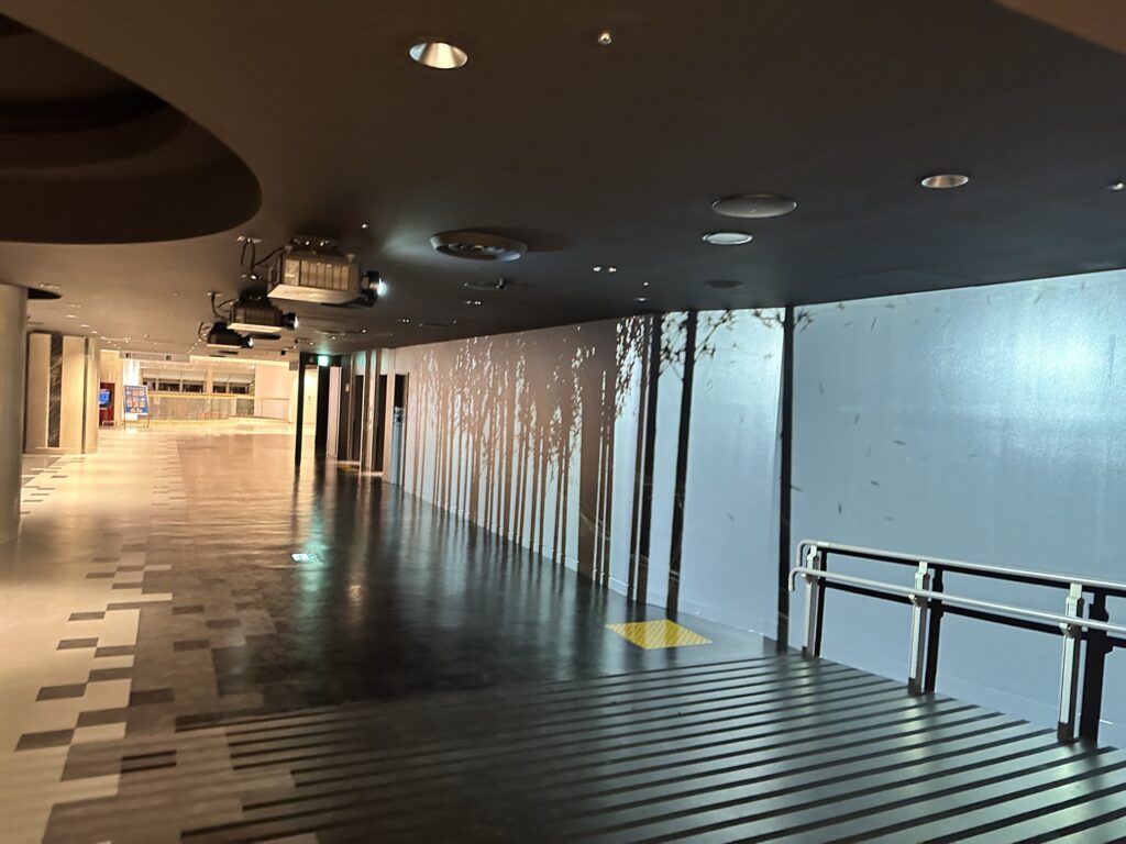 プロジェクションマッピングみたいです。キラキラプロジェクションマッピングの通路を抜けてまっすぐ行った所が展望デッキでした
